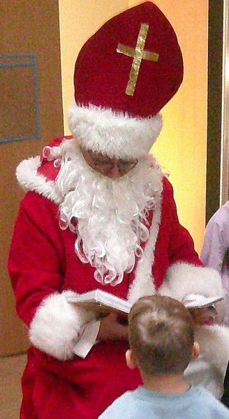 Pfarrvikar Dr. Linus freute sich über den Zuspruch zu dem kleinem Gottesdienst im Kerzenschein, der ebenso an den darauf folgende zwei Samstagabend-Gottesdiensten wiederholt wird. Für ein strahlendes Highlight sorgte ebenso der Besuch des Nikolaus, der den Gottesdienst würdig abrundete. Vor allem bei allen Kommunionkindern bedankte dieser sich für ihr frühes Aufstehen und überreichte ein kleine Belohnung an jeden der jungen Besucher. Im Anschluss traf man sich zu einem gemeinsamen Frühstück im Pfarrheim, das Gelegenheit zu Begegnung und Austausch bot. Nach dem Gottesdienst setzte der Nikolaus seinen Weg fort und besuchte den katholischen Kindergarten im Mühlweg mit seinen fünf Gruppen in den fünf Regenbogenfarben. Dort nahm er sich viel Zeit, lobte die Kinder für ihr gutes Miteinander und überreichte jedem Kind ebenso persönlich ein kleines Geschenk. Mit mehreren Liedern bedankten sich die Kinder auf ihre eigene, fröhliche Weise für den hohen Besuch, den das Kindergartenteam mit einem vorbildlichen Rahmenprogramm abrundete.